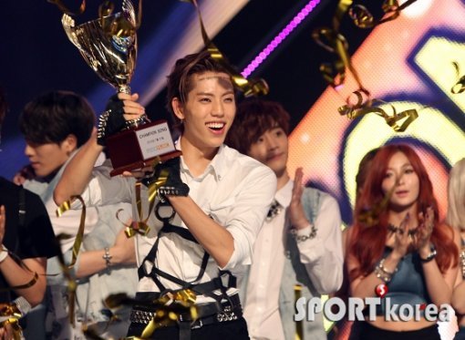 인피니트 동우가 31일 서울 광진구 악스홀에서 열린 MBC 뮤직 ‘쇼챔피언’에 출연해 1위를 차지한 후 기뻐하고 있다.