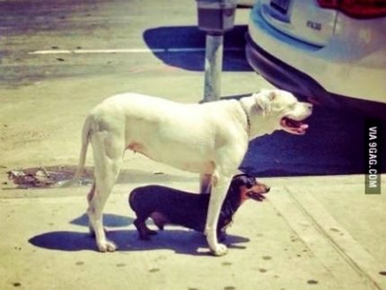 '멍멍이 전용 그늘' 사진 속 큰 개는 자신의 몸집을 이용해 그늘을 만들어 줘 웃음을 자아냈다.