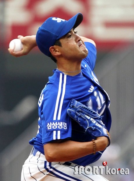 4일 오후 서울 잠실구장에서 열린 ‘2013 한국야쿠르트 세븐 프로야구’ LG 트윈스와 삼성 라이온즈의 시즌11차전 경기에서 삼성 선발 장원삼이 투구하고 있다.