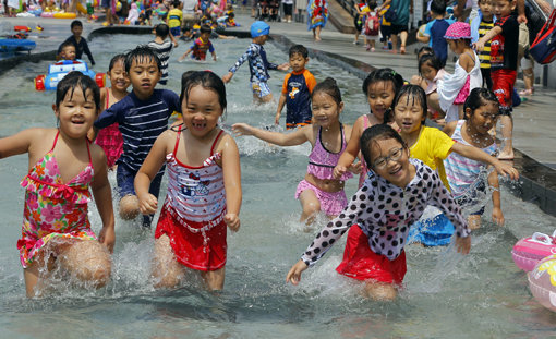 어린이들이 여름 더위를 피해 서울의 한 수영장에서 물놀이를 하며 즐거워하고 있다. 물놀이를 할 때 귀마개를 착용하면 외이도염(귓병) 예방에 도움이 된다. 사진은 특정 사실과 직접 관련 없습니다. 스포츠동아DB