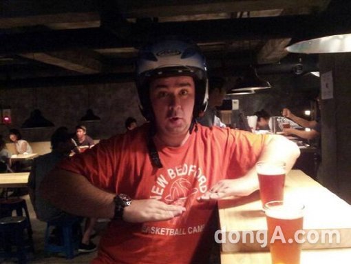 사진 속 샘 해밍턴은 크레용팝을 연상케 하는 헬멧을 쓴 채 직렬 5기통 춤을 익살스럽게 재현하고 있다.