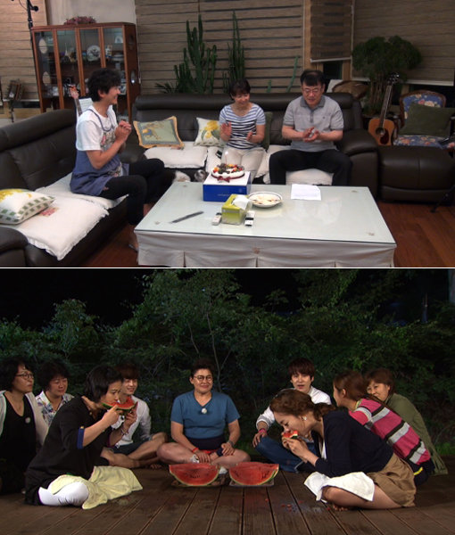 ‘잘되면 무조건 따라하고 보자?’ 스타 가족들이 출연하는 예능프로그램이 인기를 끌자 각 방송사들이 비슷한 형식의 프로그램을 잇따라 선보이고 있다. 연예인 사위와 장모의 이야기로 화제를 모으고 있는 SBS ‘자기야-백년손님’(위쪽 사진), 스타와 부모가 출연하는 KBS 2TV ‘해피선데이-맘마미아’. 사진|SBS·KBS