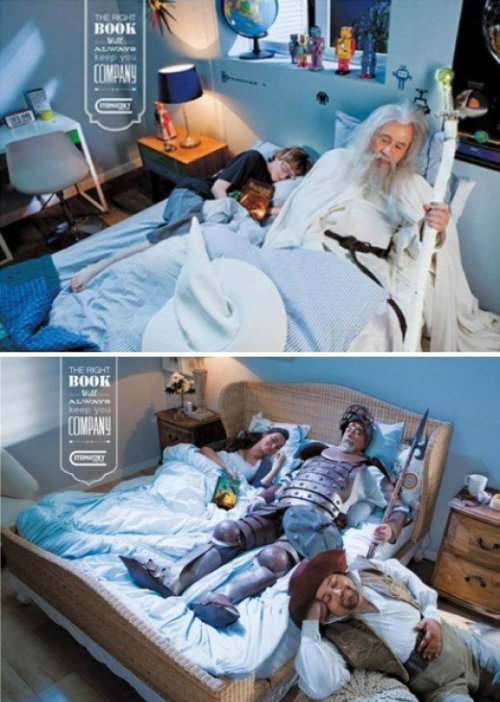 이스라엘 출판사가 사람들에게 독서의 중요성을 일깨워주기 위해 만든 이 광고 사진들은 '책을 읽으면 책 속의 주인공들과 친구가 될 수 있다'라는 컨셉으로 독서의 기쁨과 중요성을 표현하고 있다.