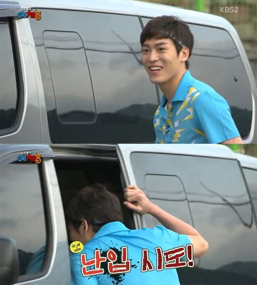 차 안에는 김소영, 서우리 선수가 타고 있었다. 존박은 차문을 열고는 차안으로 들어가려는 행동을 펼쳐 출연진들을 폭소케 했다.