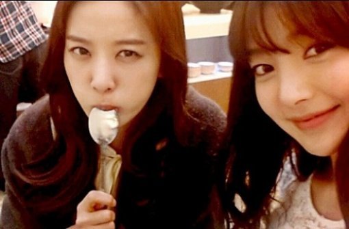 사진 속 이청아는 숟가락을 입에 물고 장난기 가득한 표정을 지어 보였으며, 송민정은 환하게 웃고 있었다.