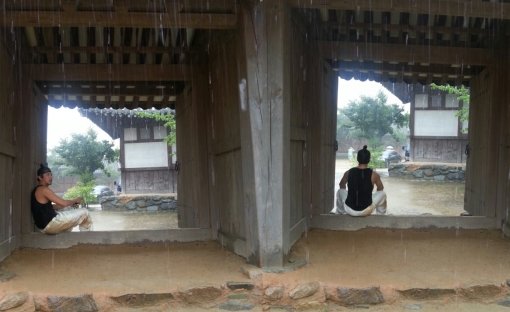 박건형의 소속사 나무엑터스는 공식 트위터를 통해 촬영 비하인드 사진을 공개했다. 촬영 중 비가 내려 잠시 쉬고 있는 박건형의 모습이 담긴 이 사진에서 유독 바지 쪽에 눈길이 간다. 몸을 던지는 열연을 하느라 의상에 진흙이 묻은 것.