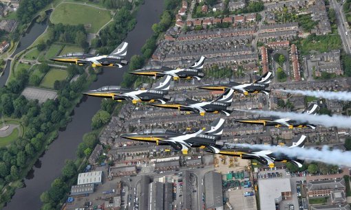 공군 특수비행팀인 ‘블랙이글스’는 국산 초음속 항공기(T-50B) 8대로 운용되는 세계 유일 에어쇼 팀이다.