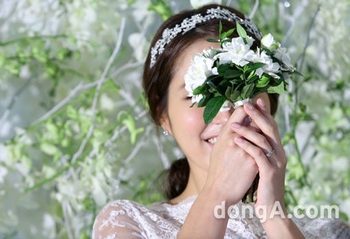 배우 이병헌과 이민정이 웨딩마치를 울린다. 배우 이민정이 10일 오후 서울 그랜드하얏트호텔에서 열린 결혼식에 앞서 포토타임을 하고 있다.