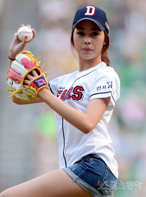 11일 오후 서울 잠실야구장에서 ‘2013 한국야쿠르트 세븐 프로야구’ 두산 베어스와 LG 트윈스의 경기가 열렸다. 2013 미스코리아 진 유예빈이 시구를 던지고 있다.