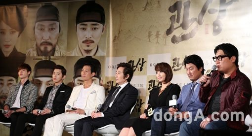 한재림 감독 등 출연진이 12일 오후 서울 동대문 메가박스에서 열린 영화 ‘관상’ 제작보고회에서 취재진의 질문에 답변을 하고 있다. ‘관상’은 조선시대를 배경으로 얼굴을 통해 앞날을 내다보는 천재 관상가가 조선의 운명을 바꾸려하면서 벌어지는 일을 그렸다.