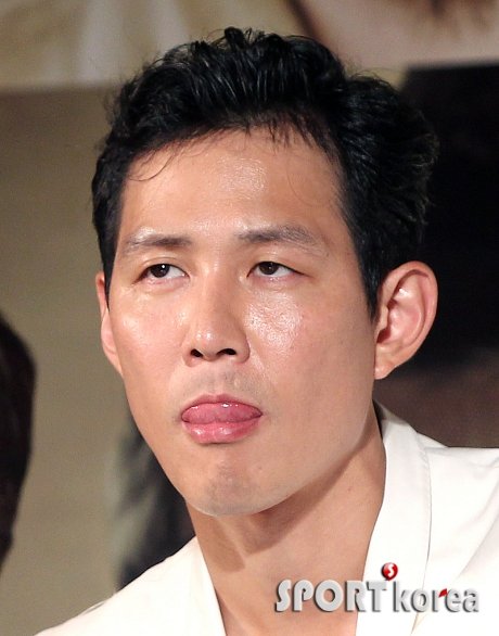 배우 이정재가 12일 오후 서울 동대문메가박스에서 열린 영화 ‘관상’ 제작발표회에 참석해 더위를 타고 있다.