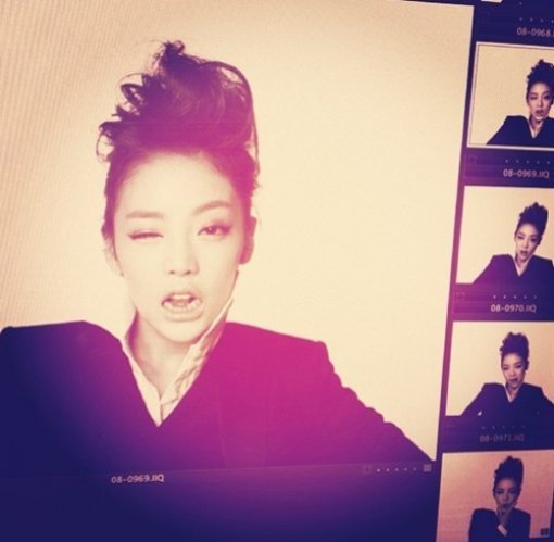 사진 속 구하라는 업스타일 헤어에 보이시한 느낌의 의상을 입고 입을 살짝 벌리고 윙크를 하고 있다. 다소 엉뚱한 표정임에도 묘한 섹시미를 발산하고 있어서 눈길을 끌었다.