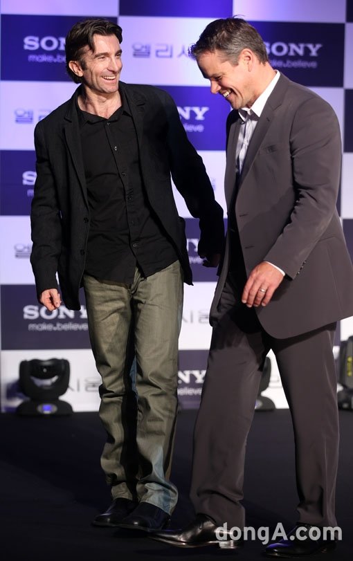 배우 샬토 코플리(왼쪽)와 맷 데이먼이 14일 오전 서울 여의도 콘래드호텔에서 열린 외화 ‘엘리시움’ 공식기자회견에 참석해 포토타임을 하고 있다.