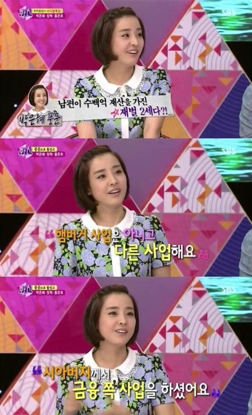 이어 박은혜는 “남편은 일반 사업을 한다”며 “시아버님이 금융 쪽 사업을 했다”고 밝혔다.