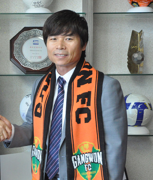 강원은 14일 김용갑(사진) 전 광저우 에버그란데 수석코치를 신임 감독으로 선임했다. 성적 부진으로 김학범 감독을 경질한 지 나흘 만에 감독 선임 절차를 마무리했다. 임은주 사장은 12일 코칭스태프와 미팅을 갖고 감독대행 체제보다는 신임 감독 선임으로 마음을 굳혔다. 김 감독을 우선순위로 접촉했다. 임 사장은 13일 저녁 김 감독을 만나 팀을 맡기기로 결정했다. 광저우 수석코치로 팀을 이끌며 1부 리그로 승격시킨 건 물론이고 온화한 성품에 높은 점수를 줬다. 계약기간과 연봉은 공개하지 않기로 했다. 다만 임 사장의 임기와 맞물릴 가능성이 높다. 김형열 수석코치와 김도훈 코치, 이을용 코치는 잔류 의사를 밝혔다.