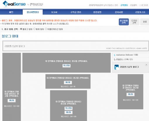 한편, 애드센스나 리얼센스는 콘텐츠 타켓팅 광고 플랫폼으로, 블로그의 포스팅 내용을 분석해 연관성이 높은 광고를 매칭하는 방식이다. 리얼센스는 원하는 위치에 광고를 붙일 수 있으며, 디자인 스킨을 선택해 배너 광고, 텍스트 광고 등을 자유롭게 게재할 수 있다