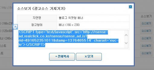 이 과정을 완료하면 지면이 생성된다. 생성된 지면 목록에서 ‘소스 보기’ 버튼을 누르면 광고 소스를 복사할 수 있다. 이 소스 코드를 내 블로그에 삽입하면 된다. 티스토리 블로그 사이드바 설정하기 메뉴(사이드 바에 광고를 게재할 경우) 혹은 htm/css 편집 모드에 들어가 광고 코드를 원하는 위치에 삽입하면 된다.