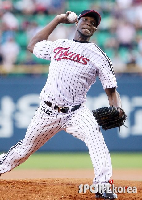16일 오후 서울 잠실야구장에서 ‘2013 한국 야쿠르트 세븐 프로야구’ LG트윈스와 한화이글스의 경기가 열렸다. LG 선발 리즈가 역투하고 있다.