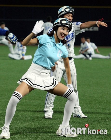 `2013 한국야쿠르트 세븐 프로야구` 삼성 라이온즈와 넥센 히어로즈의 경기가 17일 오후 포항야구장에서 열렸다. 클리닝타임을 이용해 삼성 치어리더와 응원단이 멋진 공연을 펼치고 있다.
