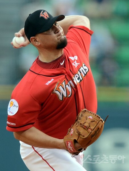 SK 좌완 용병 조조 레이예스는 “역대 한국 프로야구를 밟은 투수 중 가장 화려한 커리어를 갖췄다”는 얘기를 들었다. 그러나 시즌 중반부터 기대 이하의 피칭을 보여줘 SK를 곤경에 빠뜨렸지만 8월 들어 SK의 대반격에 힘을 보태고 있다. 잠실|김민성 기자 marineboy@donga.com 트위터 @matsri21