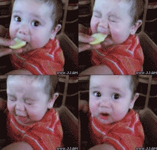 영상에는 레몬을 맛본 아기의 모습이 담겨있다. 레몬 맛을 본 아기는 눈을 질끈 감고 울 것 같은 표정으로 어쩔 줄 몰라하며 엄마를 바라보는 모습이 보는 이들의 웃음을 자아낸다.