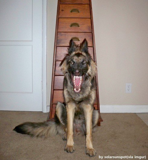 공개된 '야수로 돌변하는 개' 사진에는 입을 크게 벌리고 있는 대형견의 모습이 담겨 있다. 특히 날카로운 입을 드러내 눈길을 끌었다.