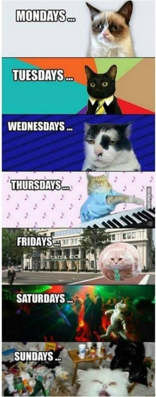 ‘고양이로 보는 일주일’게시물이 온라인 상에서 화제다.