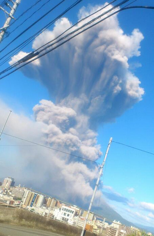교도통신에 따르면 이날 오후 4시 31분경 가고시마시에서 동쪽 4㎞ 떨어진 화산섬 사쿠라지마(사쿠라지마 화산)가 50여 분간 분화를 일으켰다. 이번 분화 때문에 가고시마 시내에는 엄청난 양의 화산재가 유입됐으며, 열차 운행이 일시 중단됐다. 다행히 인명피해는 없었다.