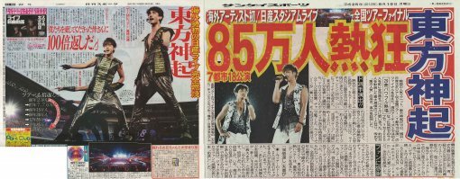 산케이 스포츠도 “동방신기로 인해 닛산 스타디움에 열기가 소용돌이쳤다. 이번 투어로 동원한 85만 명은 그들이 작년에 기록했던 55만명을 갱신하는 해외 아티스트 사상 최다 기록이 되었다”라며 동방신기에 대한 높은 관심을 드러냈다.