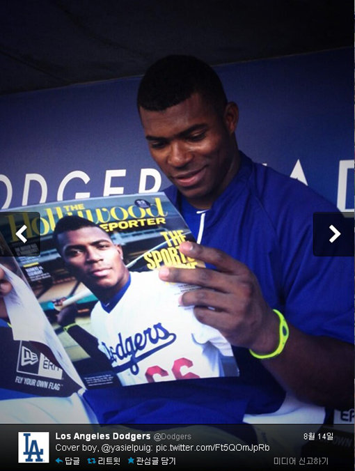 미국프로야구(MLB) LA 다저스의 야시엘 푸이그(23)의 사진이 화제다.