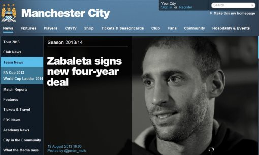 사진|사발레타 재계약. 맨시티 홈페이지 캡쳐