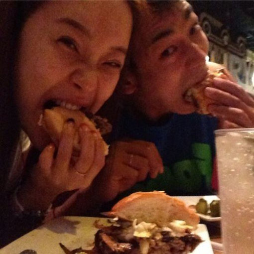 사진 속 백지영과 정석원은 입을 찢어지게 벌리고 햄버거를 먹고 있다. 특히 익살스러운 표정과 무리한 설정이 시선을 모은 것. 특히 신혼부부의 다정하고 자유분방한 모습이 눈길을 끈다.