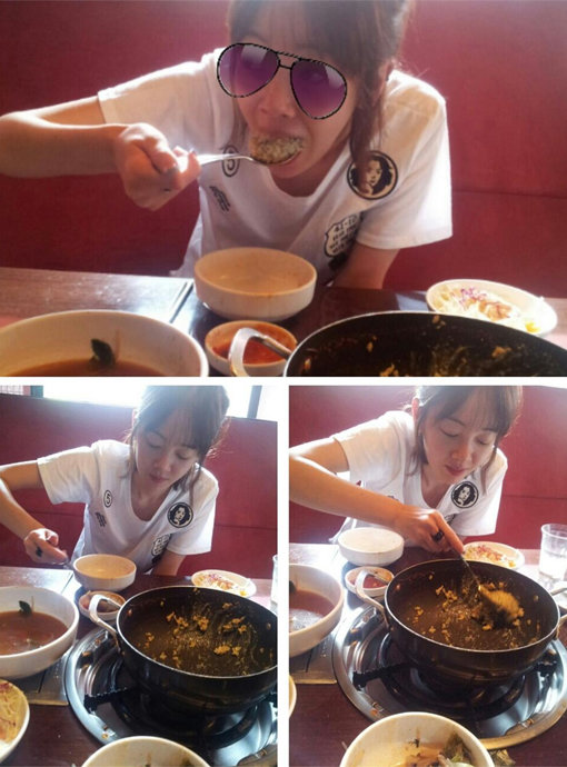 사진 속 김보미는 ‘먹방 본좌’ 하정우를 능가하는 신들린 먹방을 선보이고 있다. 냄새이 완전히 드러날 정도다. 또 왜소한 체구에 엄청난 흡입력으로 입을 크게 멀리고 숟가락을 공략하는 김보미의 모습이 웃음을 자아낸다.