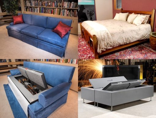 평소에는 안락하게 쉴 수 있는 기능에 방탄 기능이 추가됐다. 총을 소지한 강도의 습격에 대비할 수 있다는 것. 또 방탄 소파는 비밀 총기 보관소로도 사용이 가능하다. 소파의 쿠션 아래에는 수십 정의 총기류를 수납할 수 있는 비밀 공간이 숨어 있다. 가격은 6700달러(약 750만 원)이며 주문 제작하는 것으로 알려졌다.