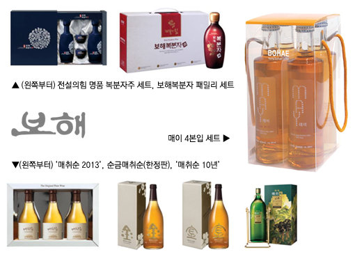 이 외에도 보해는 품격을 담은 ‘매취순 2013’, ‘순금매취 10년’, ‘매취순 10년’ 등 국민 매실주로 꾸준한 사랑을 받고 있는 ‘매취순’ 선물세트 시리즈를 마련했다.