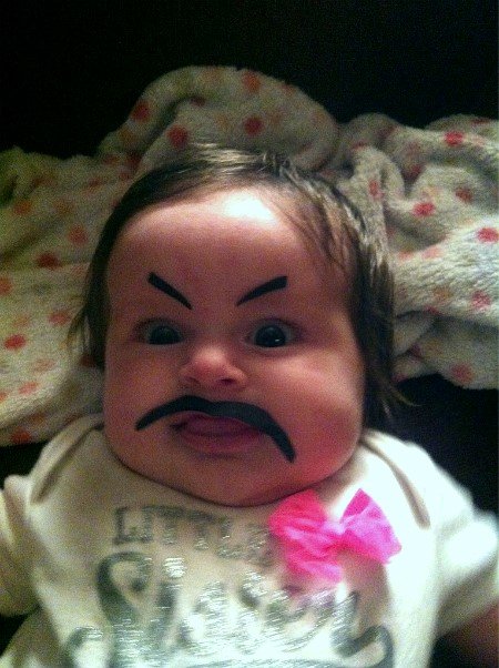 누군가가 귀여운 아기 얼굴에 눈썹과 콧수염을 그려 넣어 50년은 늙어보이는 인상으로 바꿔놓은 것이다. 우스꽝스러운 낙서에 아이의 천진난만한 표정이 더해져 보는 사람으로 하여금 웃음을 자아냈다.