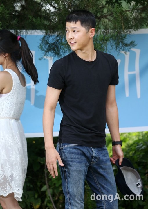 배우 송중기가 27일 오전 강원도 춘천 102보충대 앞에서 입대하기 전에 팬들에게 인사를 한 뒤 발걸음을 옮기고 있다.