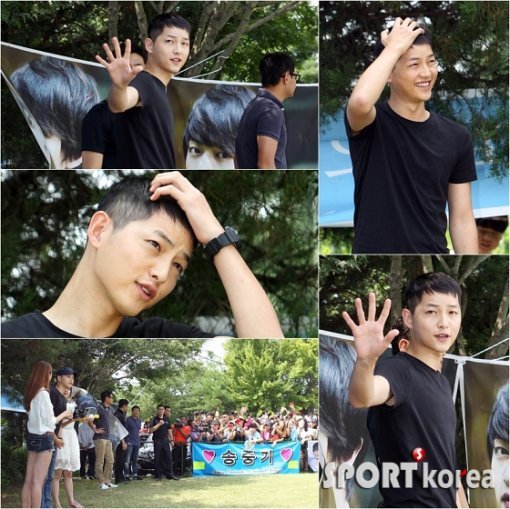 송중기의 입대 현장에는 그를 배웅하기 위해 국내·외 팬들 100여 명이 몰려 인산인해를 이뤘다.
