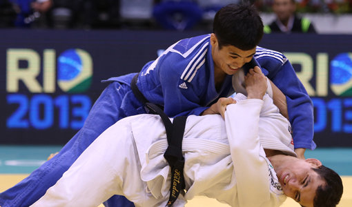 용인대 김원진(위)이 27일(한국시간) 브라질 리우데자네이루 마라카나지노경기장에서 열린 2013세계유도선수권대회 첫날 남자 60kg이하급 동메달 결정전에서 간바트 볼드바타르(몽골)를 힘으로 제압하고 있다. 사진제공|국제유도연맹