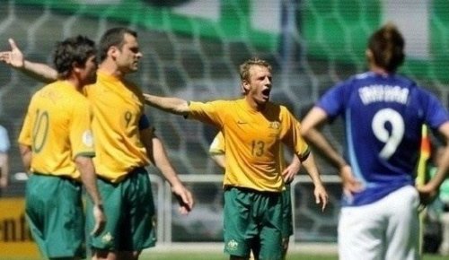 공개된 사진은 일본과 호주 축구대표팀의 경기 중 촬영된 장면이다. 항의하고 있는 호구 선수는 팔을 뻗고 있고 그 팔은 뒤쪽까지 이어져 있는 것처럼 보인다. 그러나 이 팔은 옆에 서 있는 선수의 팔.