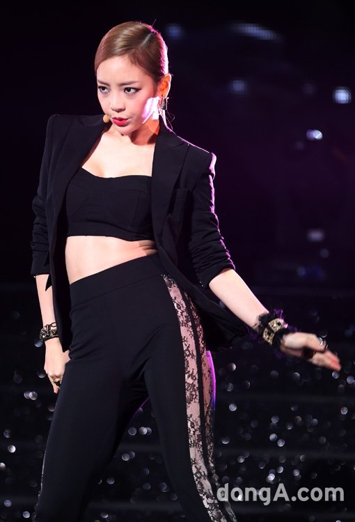 걸그룹 카라의 멤버 구하라가 2일 오후 서울 광진구 유니클로 악스홀에서 열린 컴백 쇼케이스에서 화려한 무대를 선보이고 있다.