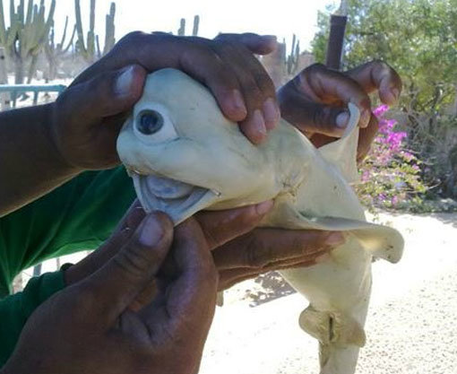 공개된 사진에서 이 상어는 외눈을 한 채, 괴상스러운 외모를 뽐내고 있다.