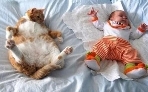 ‘주인 따라 자는 고양이’ 3탄 속 주인공은 아기와 고양이다. 어린 아이가 두 팔과 다리를 뻗은 채 누워 자고 있고 그 옆에 있는 고양이 역시 아기와 같은 자세로 누워 있어 웃음을 자아낸다.