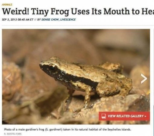 ‘입으로 소리 듣는 개구리’는 귀가 없으며 정식 명칭은 ‘가디너 개구리’로 알려졌다.