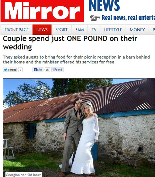 사진|‘1700원 들인 결혼식’ 데일리 미러 홈페이지 캡쳐