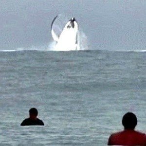 공개된 ‘수영 중 최악의 만남 2탄’ 사진에는 바다에서 수영을 즐기는 사람들이 갑자기 수면 위로 뛰어 오른 거대한 고래를 지켜보는 모습이 담겨 있다.