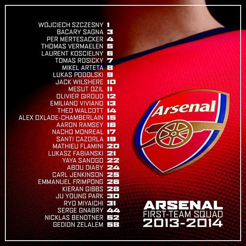 아스널은 4일(이하 한국시각) 구단 공식 홈페이지를 통해 2013~2014시즌 1군 선수 명단을 공개했다.
