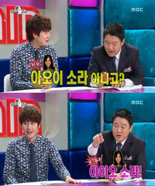 이에 규현이 ‘아이유 소라’가 아니고 ‘아오이 소라’라고 정정해 줬지만 이번에는 ‘아이오 소라’라고 폭소를 자아냈다.