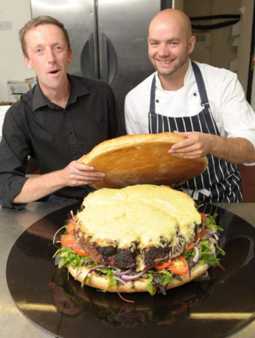 최근 영국 일간지 메트로 등 외신에 따르면, 데이브 코사와 저스틴 미니는 ‘JD's Grill’이란 음식점 1주년을 위해 2만 5000칼로리 햄버거를 만들었다.