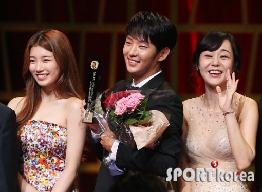 5일 오후 서울 국립극장에서 열린 ‘제8회 서울 드라마 어워즈 2013’에 출연한 배우 수지, 이준기, 김윤진(왼쪽부터)가 기념촬영을 하고 있다.